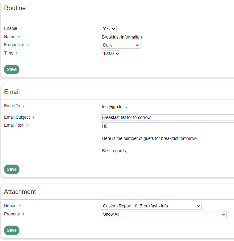 A Routine is an action that can be programmed to occur at a specified date. It will send a pre-canned Email with an attachment to a fixed Email address.