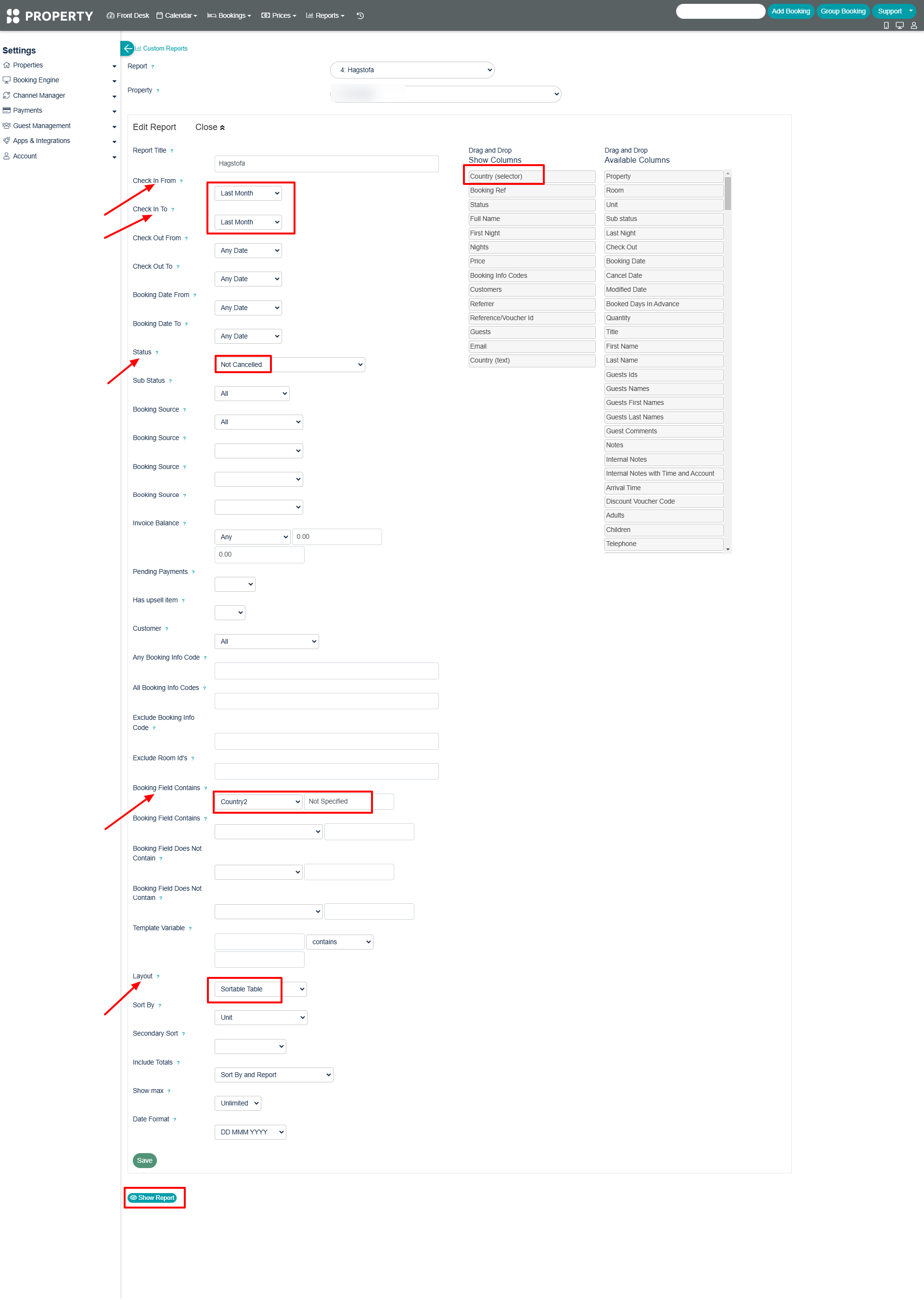 The best way to periodically check and update the nationality of your guests to ensure consistent data is to set up a Custom Report with bookings that need updating. For that you take the following steps: