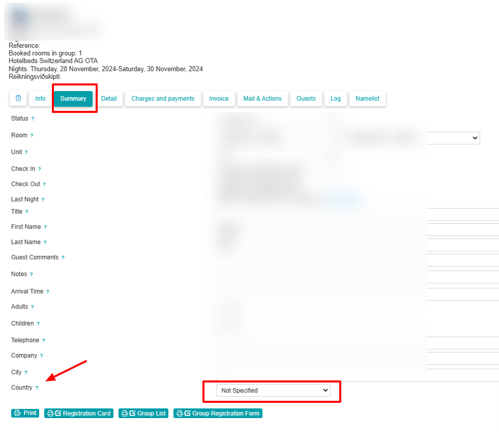 This may result in inconsistent data for your property and make it more difficult to segment your clientele for sales and marketing purposes. To review and fix reservations with "Not Specified" as the country of the guest, please follow these instructions: