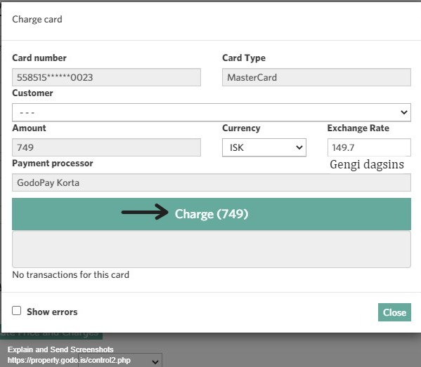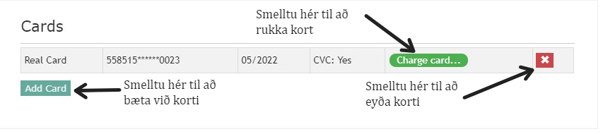 Þegar þú smellir á Charge Card þá opnast þessi gluggi.